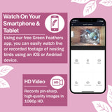 The Green Feathers exclusive app is designed from the ground up for simplicity and quick setup. Available for both iOS and Android. Watch live and previously recorded footage - share with friends quickly and easily. Our app even works with Alexa, allowing you to view your camera on TVs or Echo devices.