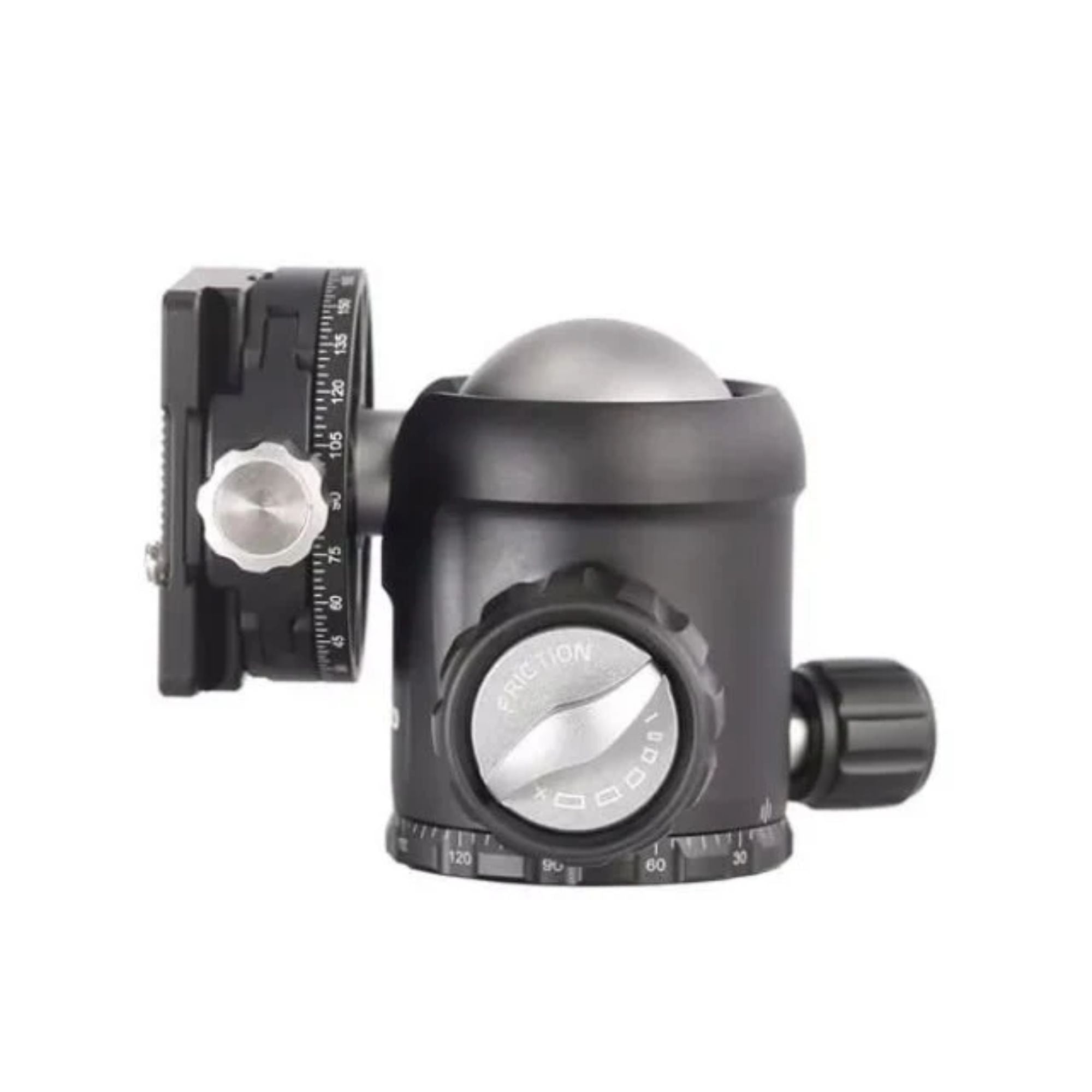 The included NB-40 panning clamp ball head provides full 360° rotation at both the base and the Arca-Swiss-compatible quick-release platform, allowing precise framing without repositioning the tripod. It features a built-in bubble level, clearly marked degree scales, and independently adjustable friction control for smooth, accurate adjustments. Despite its compact size, the ball head supports up to 7.3kg (16lb), making it ideal for heavier camera rigs.