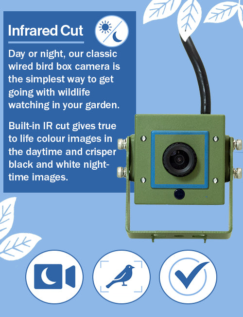 Day or night, our classic wired bird box camera is the simplest way to get going with wildlife watching in your garden. Pop it in your nestbox and the included 3-way cable will transmit all the feathered frolicking to your TV. (Do birds use cutlery at home? If they ever learn, this window to the wild will show you!)