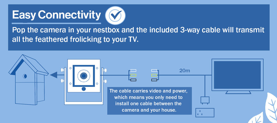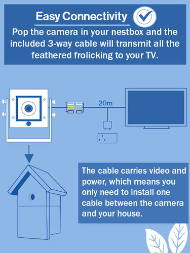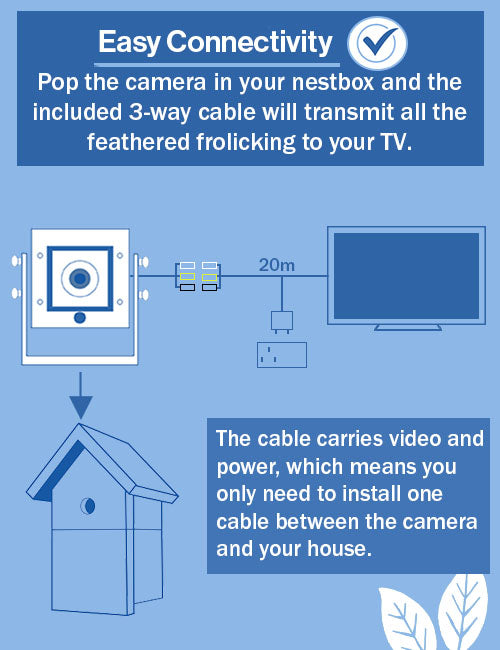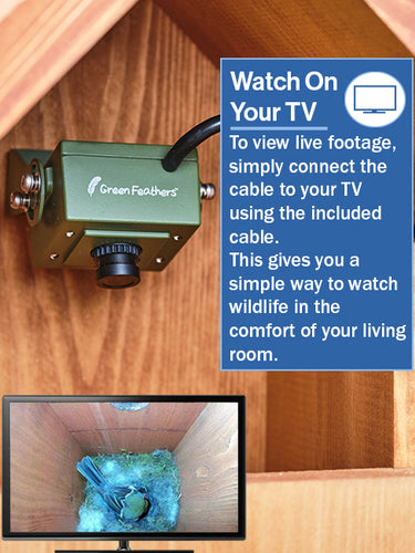 Try adding an LED lamp to your bird box for even clearer daytime images. You can also use an AV to HDMI converter to connect to your TV with a universal HDMI connection.