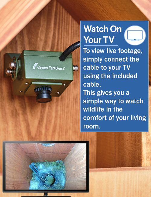 Pop it in your bird box and the included 3-way cable will transmit all the feathered frolicking to your TV. (Do birds use cutlery at home? If they ever learn, this window to the wild will show you!) Speaking of bird boxes, the handmade wooden one we’ve included has been purpose-built to fit the camera.