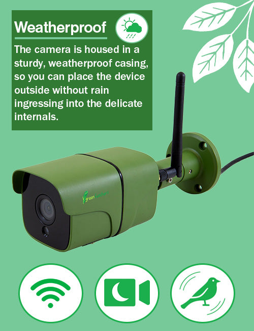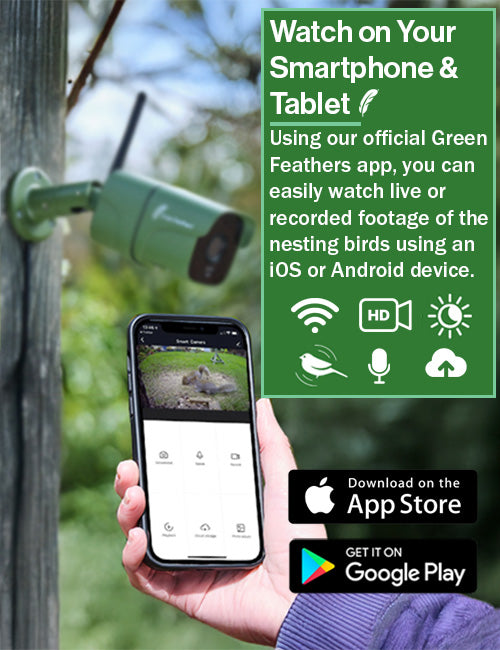 Works with our official Green Feathers app, which is also compatible with our 3rd Gen WiFi Bird Box Cameras. We recommend 40mbps internet speeds for the best use of this camera.