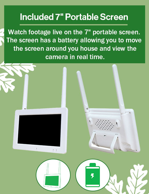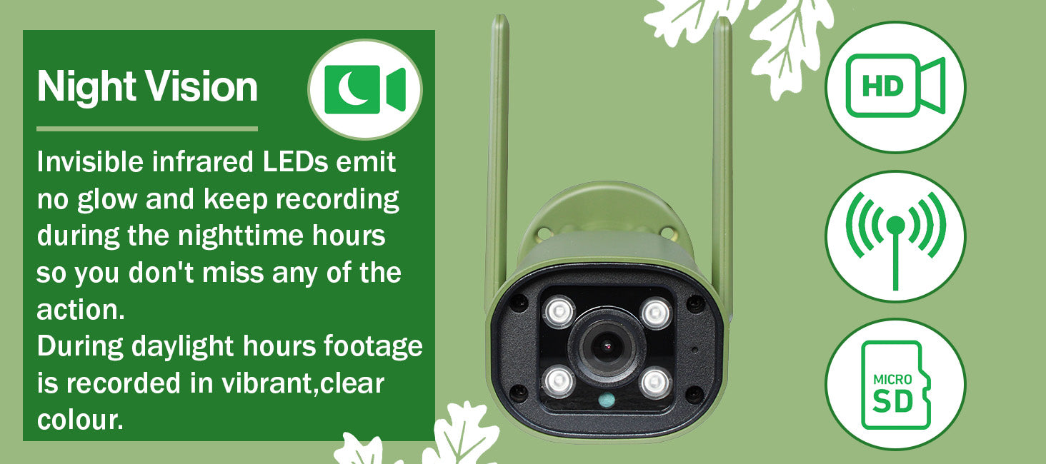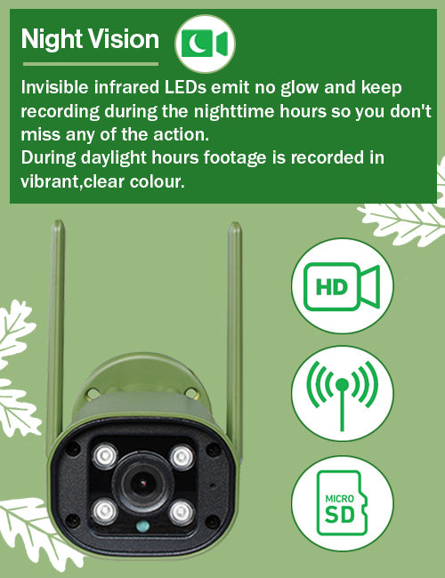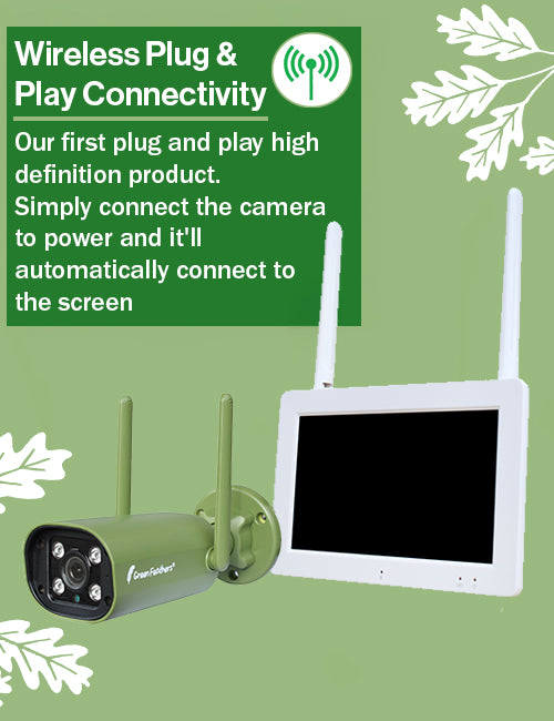 The camera is paired to the screen using a wireless connection (at least 50m Wireless Range), meaning there is absolutely no need to worry about connection issues. Invisible infrared LEDs emit no glow and keep recording during the nighttime hours so you don't miss any of the action. Add up to 4 cameras to the screen for the ultimate garden wildlife experience. The screen can even connect to WiFi for compatibility with the Green Feathers app.