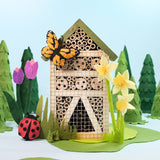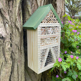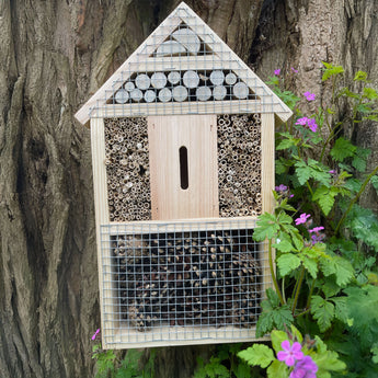 The Bug Hotels are filled with natural materials such as dried bamboo, drilled pine pegs, straw, and pine cones to attract a variety of many insects to your garden.