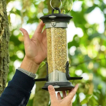 If opportunistic squirrels come calling, fear not! The aluminium and strong polycarbonate materials will keep the bird food nice and safe, so any furtive furry visitors should soon be scurrying to try their luck elsewhere. (And if they ever learn to use a tin opener, just spread some coffee grounds nearby. Squirrels hate the smell!)