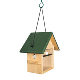 The Breda hanging feeding house is designed specifically for small birds, such as Great Tits and Blue Tits. The only entrances are a 32mm hole on the sides or the narrow opening above the plexiglass. Compared to a lot of feeders this a much better choice for people not looking to have too many food scraps covering their garden. Less mess also means less risk of attracting unwanted pests.