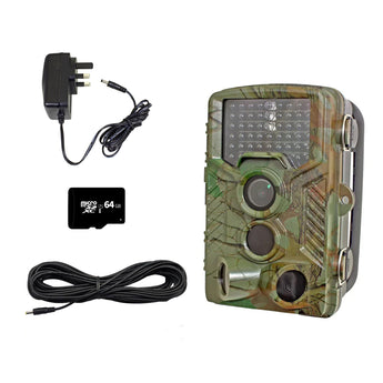 In our waterproof trail wildlife camera ultimate bundle, we've bundled together our popular trail camera with all the accessories you need including 64GB recording storage and a power supply.