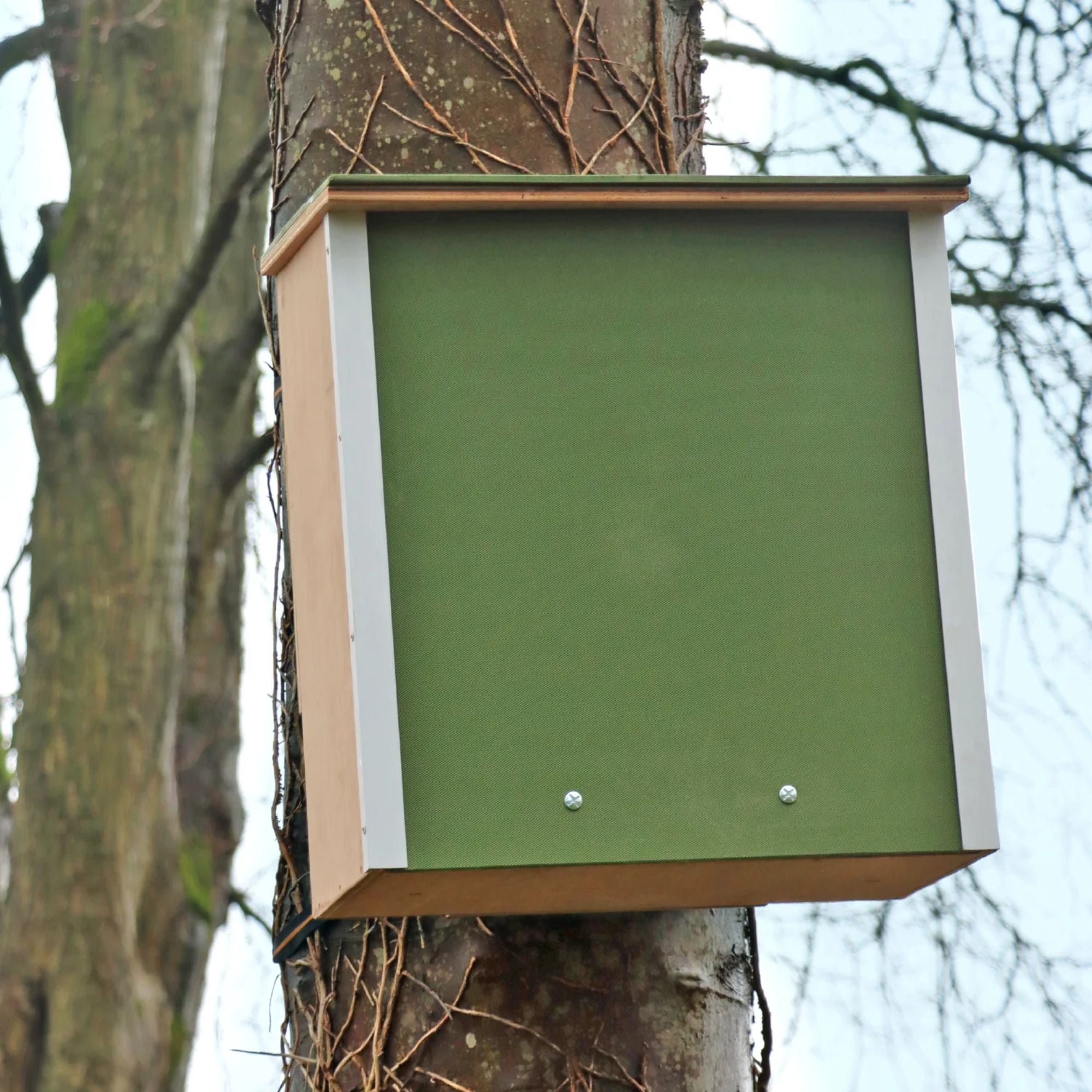 The box is secured using wire or rope threaded through pre-drilled holes in the vertical spacer batons and fastened around the supporting tree or pole. These vertical batons also help minimise sway in high winds, maintaining stability.
