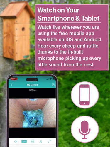 Day or night, this camera gives you a fantastic way to watch the wildlife in your garden. Mount it in one of our nestboxes and the network cable will transmit all the feathered frolicking to your smartphone, tablet, or PC. (Do birds play chess at home? If they ever start, this window to the wild will show you!)
