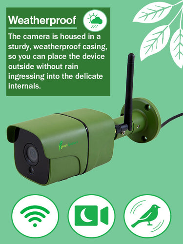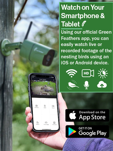 Works with our official Green Feathers app, which is also compatible with our 3rd Gen WiFi Bird Box Cameras. We recommend 40mbps internet speeds for the best use of this camera.