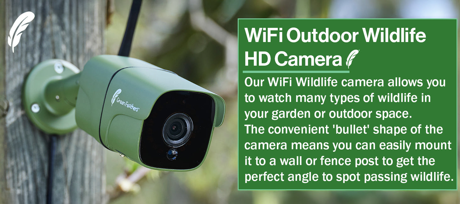 This third-generation WiFi wildlife camera allows you to watch many types of wildlife in your garden or outdoor space. The convenient 'bullet' shape of the camera means you can easily mount it to a wall or fence post to get the perfect angle to spot passing wildlife. Featuring built-in WiFi connectivity and night vision this camera can be connected to your WiFi network to allow you to connect to the camera wherever you are in the world! For recording, the camera features onboard storage for a microSD card to capture motion detection footage.